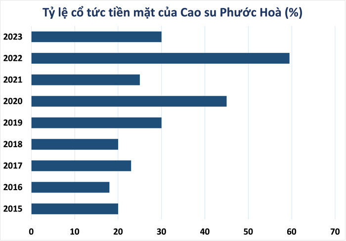 Tại ĐHĐCĐ thường niên 2024, cổ đông công ty đã thông qua mức cổ tức tiền mặt năm 2023 là 30%, như vậy, PHR đã hoàn thành mục tiêu đặt ra. Năm 2024, công ty lên kế hoạch chi trả cổ tức với giá trị tối thiểu 167 tỷ đồng (tức tỷ lệ thấp nhất là 12,35% trên vốn điều lệ).