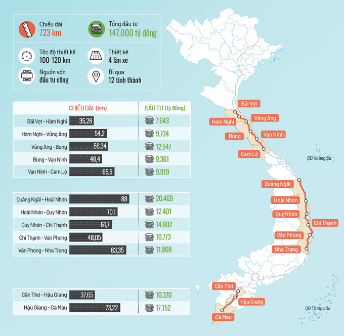 4 công trình trên nằm trong 12 dự án thành phần thuộc Dự án cao tốc Bắc Nam giai đoạn 2. Giai đoạn phân kỳ, các dự án được đầu tư 4 làn xe, rộng 17 m, không có làn dừng khẩn cấp mà bố trí các điểm dừng, vận tốc thiết kế 90 km/h. Sau khi 12 dự án hoàn thành, cao tốc Bắc Nam sẽ được nối thông từ Lạng Sơn đến Cà Mau.