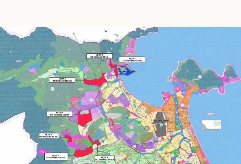 Vị trí 2 có tổng diện tích quy hoạch 77ha thuộc phường Hải Vân, trong đó, điều chỉnh 67ha đất công nghiệp, 5ha cây xanh công cộng cấp đô thị, 5ha đất mặt nước thành đất khu thương mại tự do (là khu phức hợp logistics, sản xuất và công nghiệp hỗ trợ, liền kề Khu công nghiệp Liên Chiểu).