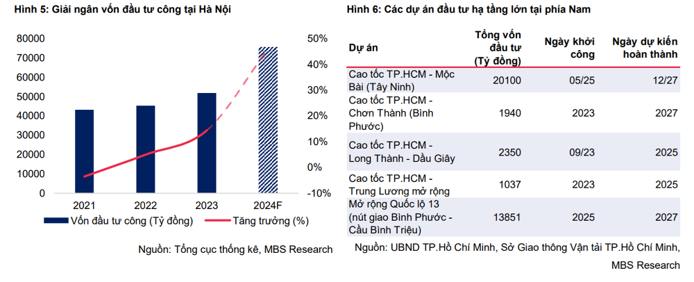 Liên quan đến cơ sở hạ tầng, MBS Research cho rằng các khu vực đô thị ngoại ô sẽ được hưởng lợi từ sự đầu tư mạnh mẽ vào cơ sở hạ tầng.