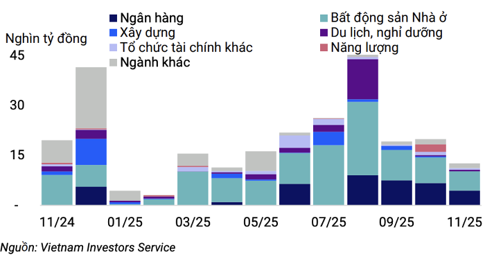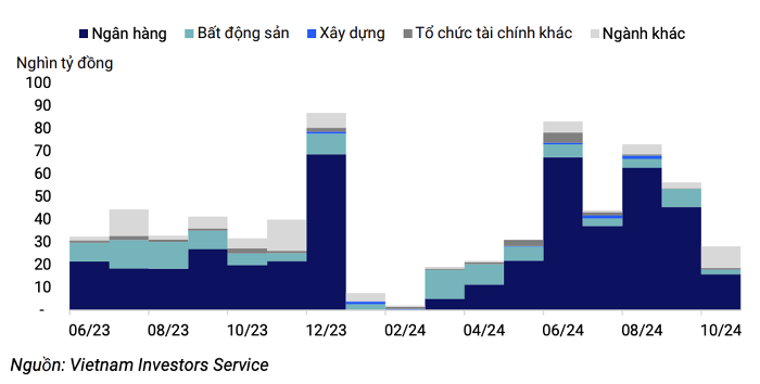 Trái phiếu phát hành mới hàng tháng theo nhóm ngành