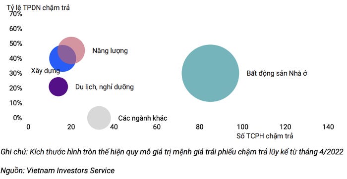 Lượng trái phiếu chậm trả theo nhóm ngành