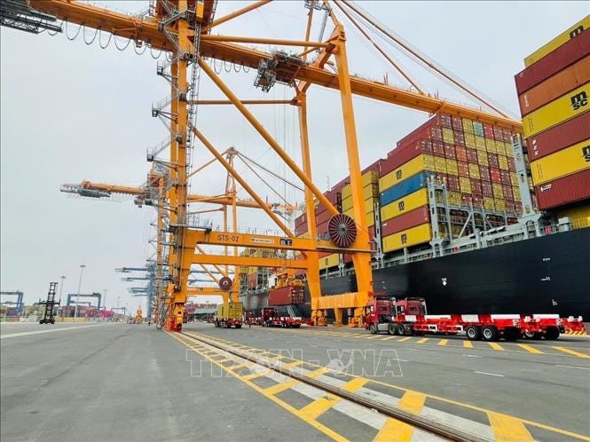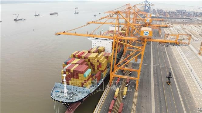 Bến số 3 và số 4 của Cảng Lạch Huyện đón chuyến tàu thử nghiệm đầu tiên của hãng tàu Mediterranean Shipping Company S.A (MSC). Ảnh: Hoàng Ngọc/TTXVN