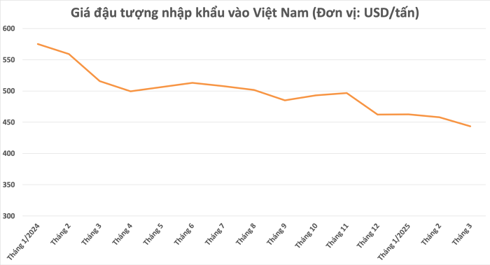 Giá đậu tương bình quân trong quý I nhập khẩu khoảng 454 USD/tấn, giảm 17% so với cùng kỳ năm ngoái, theo số liệu từ Hải quan Việt Nam.