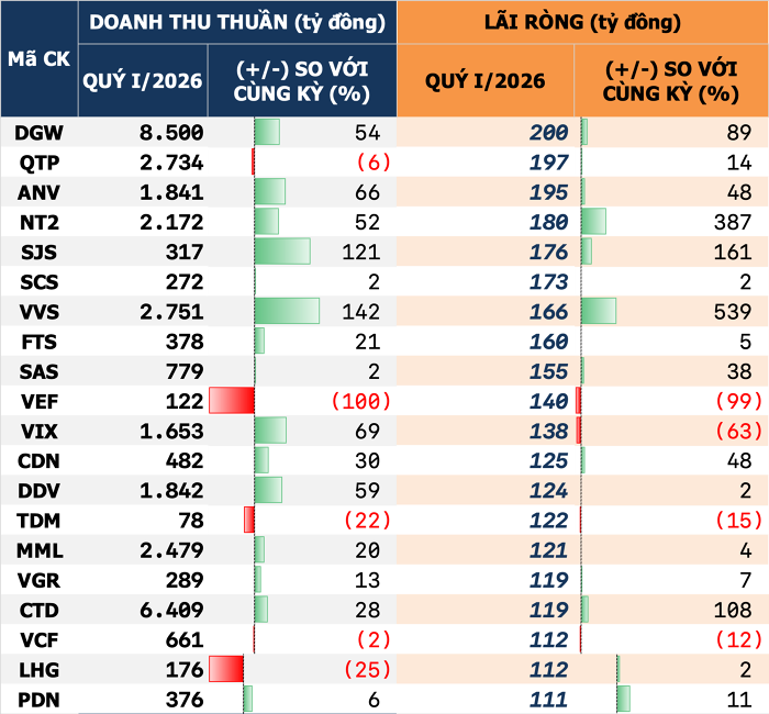 Kết quả kinh doanh quý I/2026 cho thấy xu hướng tích cực, khi số doanh nghiệp tăng doanh thu và tăng lợi nhuận đều chiếm ưu thế. Nhóm ngân hàng, chứng khoán, hàng tiêu dùng, bán lẻ ghi nhận nhiều công ty có sự tăng trưởng lợi nhuận so với cùng kỳ.