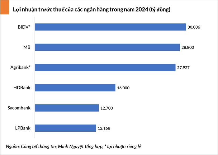 Ngoài các ông lớn nói trên còn có LPBank, ngân hàng công bố kết quả kinh doanh năm 2024 với lợi nhuận trước thuế đạt 12.168 tỷ đồng, thực hiện được 116% kế hoạch năm và chính thức bước chân vào nhóm doanh nghiệp có lợi nhuận trên 10.000 tỷ đồng.