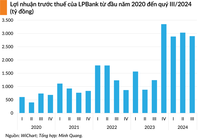 Cuối quý III, tổng tài sản của LPBank đã lên gần 446.000 tỷ đồng, tăng 16,4% so với cuối năm 2023. Trong đó, cho vay khách hàng tăng 16,1%, đạt 319.770 tỷ đồng. Tiền gửi khách hàng tại LPBank cũng tăng 14,3%, đạt gần 271.303 tỷ đồng.
