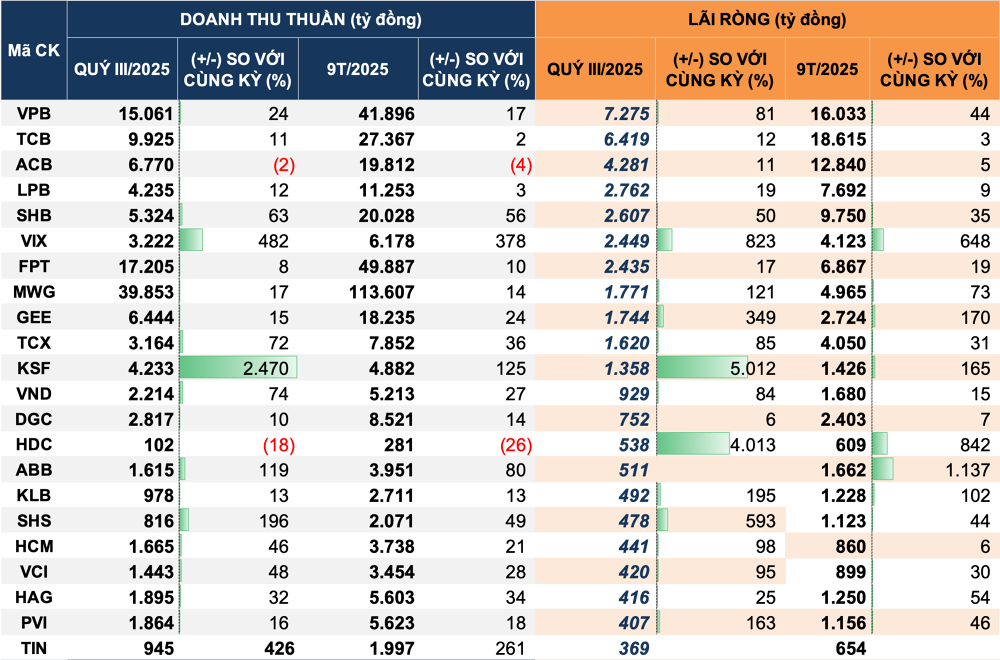 Trong danh sách công bố báo cáo tài chính, có khoảng 67 doanh nghiệp báo lãi trên trăm tỷ trong quý III và 11 đơn vị có lãi ròng trên nghìn tỷ.