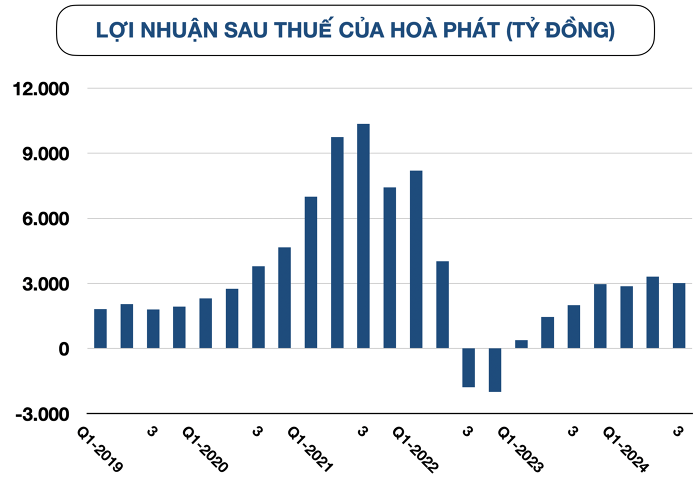 Về doanh thu, Hòa Phát đạt hơn 34.000 tỷ đồng trong quý III, tăng 19% so với cùng kỳ năm trước. Lũy kế 9 tháng, Hòa Phát ghi nhận hơn 105.000 tỷ đồng doanh thu, tăng 23% so với cùng kỳ năm trước và hoàn thành 75% kế hoạch năm 2024.