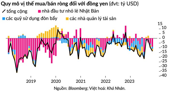 Theo phân tích, các nhà đầu tư nhỏ lẻ Nhật Bản cùng các quỹ sử dụng đòn bẩy và nhà quản lý tài sản quốc tế đã tăng số vị thế đặt cược chống lại đồng yen lên 13,5 tỷ USD vào tháng 11. Hồi tháng 10, quy mô các vị thế chỉ đạt 9,7 tỷ USD.
