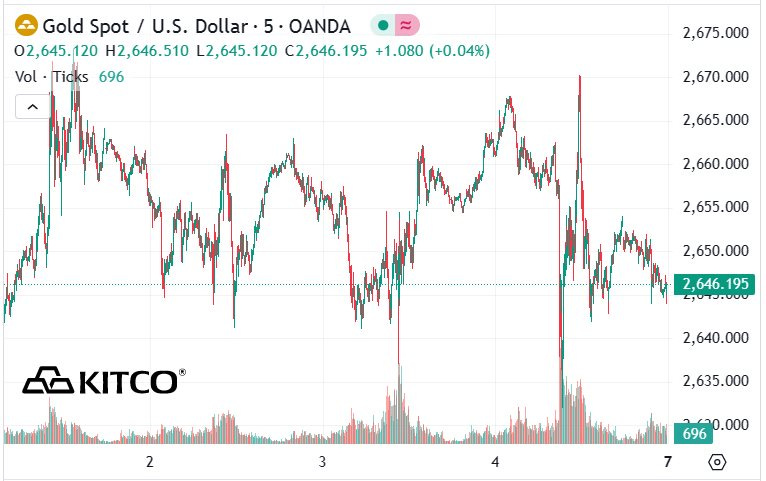 Giá vàng thế giới biến động nhẹ quanh vùng 2.646,5 USD/ounce. Ảnh: Int