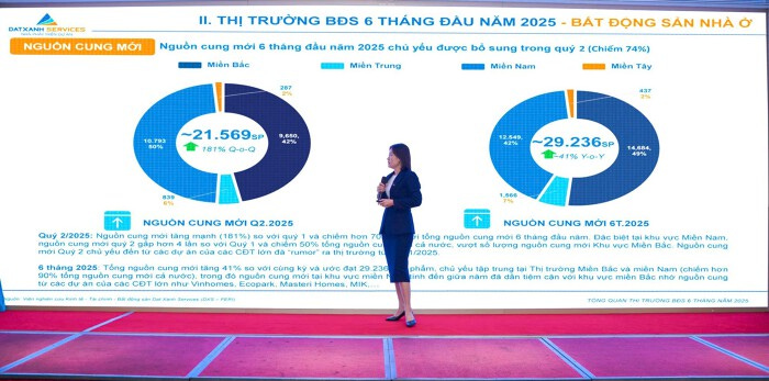 Bà Liên thông tin, "thay cho vị thế áp đảo của khu vực phía Bắc trong thời gian trước thì nguồn cung mới trong nửa đầu năm nay được bổ sung từ các khu vực khác, đặc biệt là phía Nam. Dự kiến miền Nam sẽ có khoảng 18 dự án sẽ được mở bán trong thời gian tới, trong khi miền Bắc là 7 dự án, miền Trung là 8 dự án và miền Tây là hai dự án".