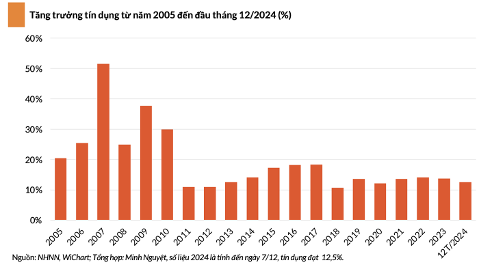 Chứng khoán ACBS cũng dự báo tăng trưởng tín dụng toàn ngành ngân hàng ở mức 15% trong năm 2025, tương đương mục tiêu năm 2024 và cao hơn tăng trưởng GDP danh nghĩa.