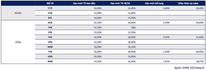 "Việc được cấp thêm room tín dụng giúp các ngân hàng nói trên mở rộng quy mô kinh doanh, khi mà nhu cầu tín dụng thường cao hơn thời điểm cuối năm", báo cáo SHS cho hay.
