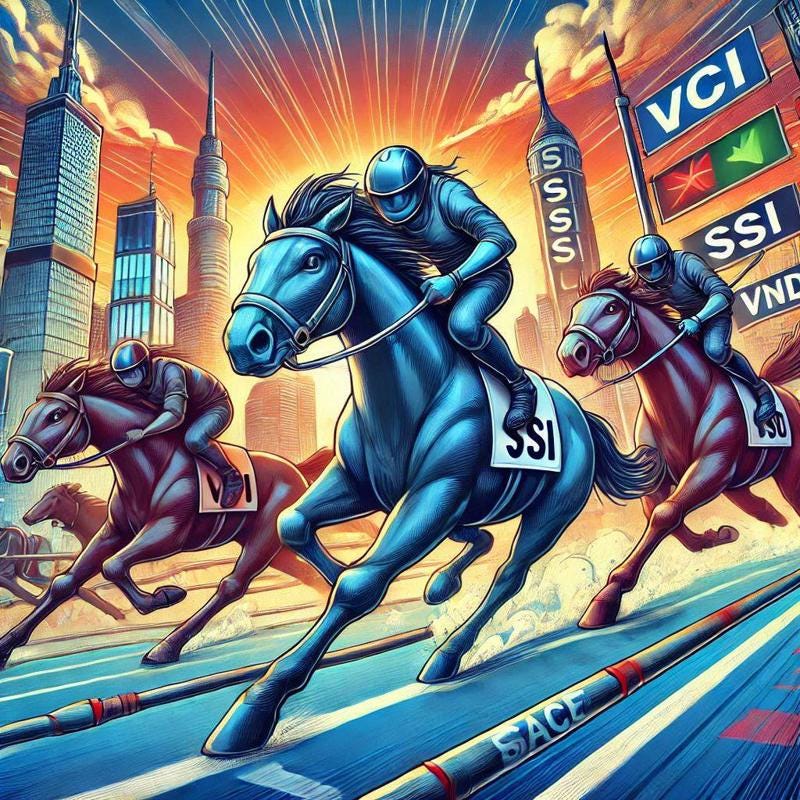 Tuy nhiên với lợi thế cạnh tranh về nguồn lực, quy mô vốn cùng với tệp khách hàng khai thác chéo từ ngân hàng, nhóm các công ty này sẽ tạo sức ép cạnh tranh thị phần không nhỏ lên toàn ngành khi tập trung kinh doanh các mảng chính. Các tác động có thể xảy ra đối với toàn ngành bao gồm: Cạnh tranh về phí, các công ty đẩy mạnh các chính sách miễn giảm phí giao dịch để giữ thị phần, qua đó ảnh hưởng đến biên lợi nhuận mảng môi giới; Giảm lãi suất cho vay kí quỹ.