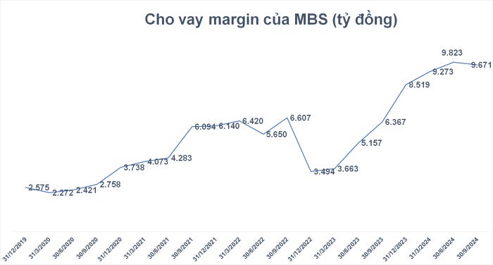 MBS vừa hoàn tất đợt phát hành thêm cổ phiếu ra công chúng theo tỷ lệ 25% trong tháng 9, nâng vốn điều lệ lên 5.471 tỷ đồng. Hiện công ty đang triển khai tiếp đợt phát hành 25,73 triệu cp cho 4 nhà đầu tư chuyên nghiệp với giá 23.040 đồng/cp. Với 593 tỷ đồng dự thu về, 493 tỷ đồng sẽ được phân bổ cho hoạt động cho vay margin.