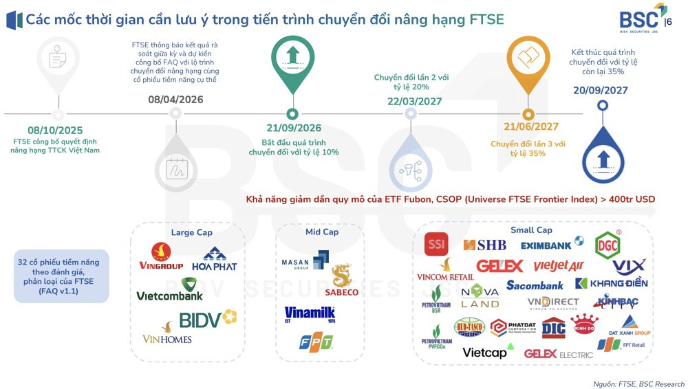 BSC Research cho rằng sự gia tăng đáng kể của dòng vốn thụ động sẽ không diễn ra ngay tại thời điểm bắt đầu nâng hạng, mà nhiều khả năng chỉ trở nên rõ hơn sau gần một năm.