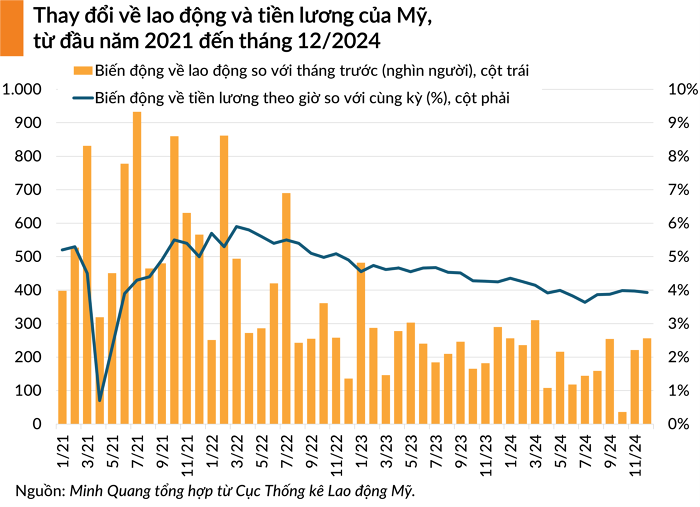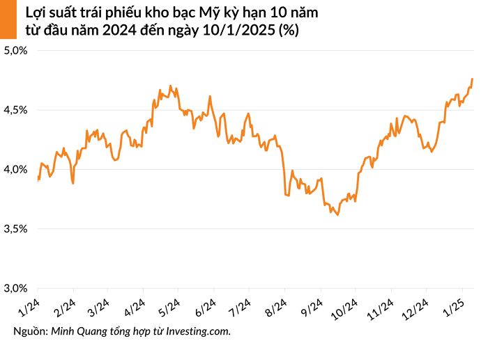 Theo báo cáo vừa công bố, nền kinh tế Mỹ đã tạo thêm 256.000 việc làm trong tháng 12, cao hơn đáng kể so với dự báo 155.000 việc làm do các nhà kinh tế được Dow Jones thăm dò dự báo. Tỷ lệ thất nghiệp đã giảm xuống 4,1%, so với dự báo 4,2% trong tháng. Sau báo cáo, lợi suất trái phiếu kho bạc Mỹ kỳ hạn 10 năm đã vọt lên gần 4,8%, mức cao nhất kể từ cuối năm 2023.