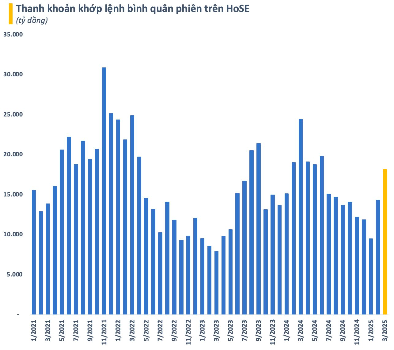 Margin tăng mạnh trong quý đầu năm góp phần thúc đẩy thanh khoản thị trường cải thiện. Giá trị khớp lệnh bình quân trên HoSE liên tục tăng lên mức trên 18.000 tỷ/phiên trong tháng 3. Xu hướng này tiếp tục được duy trì thậm chí còn bùng nổ hơn trong tháng 4 khi thị trường có nhiều biến động mạnh.