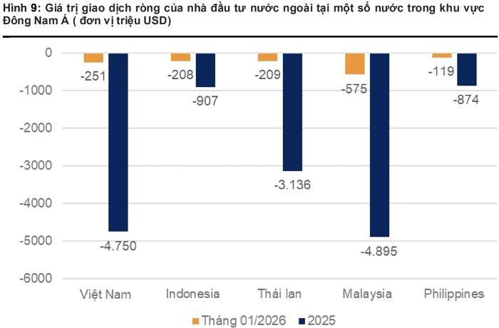 Tuy nhiên, nếu xét theo giao dịch của nhà đầu tư nước ngoài trên thị trường cơ sở, Việt Nam vẫn ghi nhận trạng thái bán ròng khoảng 6.700 tỷ đồng trong tháng 1.