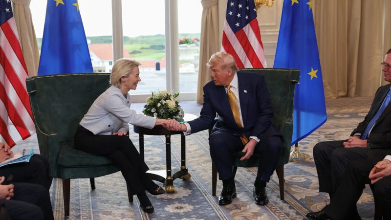 Thông báo về thỏa thuận thương mại EU - Mỹ khép lại nhiều tháng đàm phán căng thẳng giữa Brussels và Washington. EU đã chuẩn bị một gói thuế quan áp đặt với khoảng 100 tỷ euro (tương đương 117 tỷ USD) hàng hóa Mỹ nhập khẩu vào khối này trong trường hợp hai bên không đạt được thỏa thuận và ông Trump áp mức thuế quan 30% với EU.