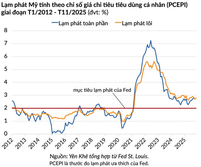 Dù vậy, lạm phát đang gây nhiều lo ngại hơn. Mặc dù áp lực giá đã giảm đáng kể so với mức đỉnh vào mùa hè năm 2022, tỷ lệ lạm phát gần đây vẫn gần mức 3%, cao hơn mức mục tiêu 2% của Fed.