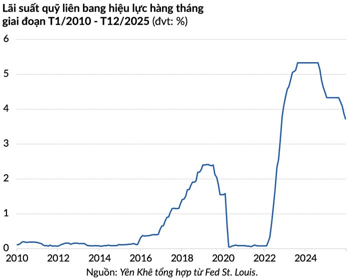 Quyết định này đã chấm dứt ba đợt cắt giảm lãi suất liên tiếp vào năm 2025, mỗi lần 25 điểm cơ bản (bps). Đây là các đợt giảm phòng ngừa của FOMC nhằm bảo vệ thị trường lao động.