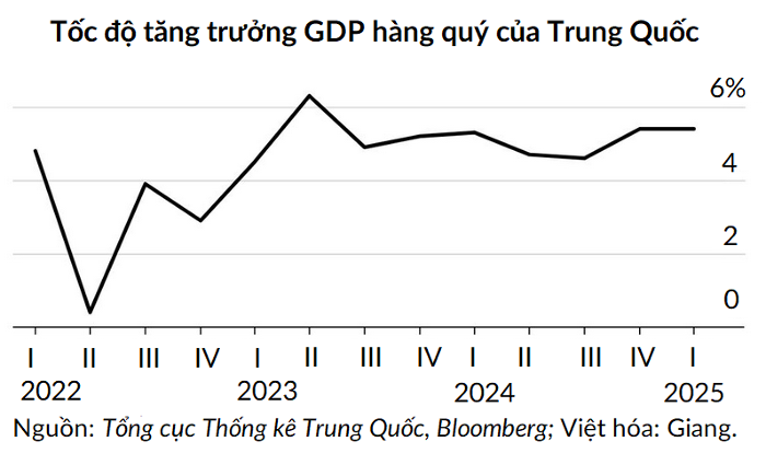 Nền kinh tế Trung Quốc đạt tốc độ tăng trưởng 5,4% trong quý đầu năm 2025, cao hơn dự kiến của các nhà phân tích do Reuters khảo sát là 5,1%. Nhờ các chương trình kích thích của chính phủ, nền kinh tế số hai thế giới đã duy trì được đà phục hồi mạnh mẽ bắt đầu từ cuối năm 2024.