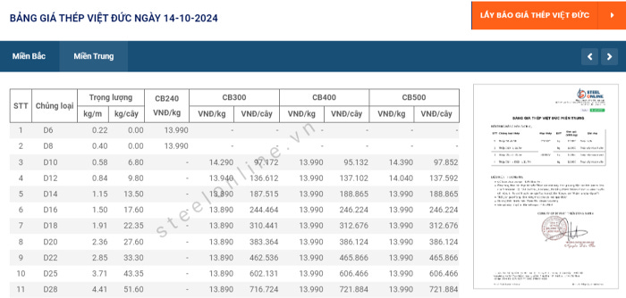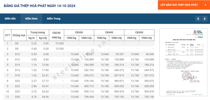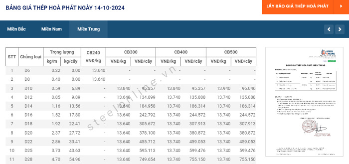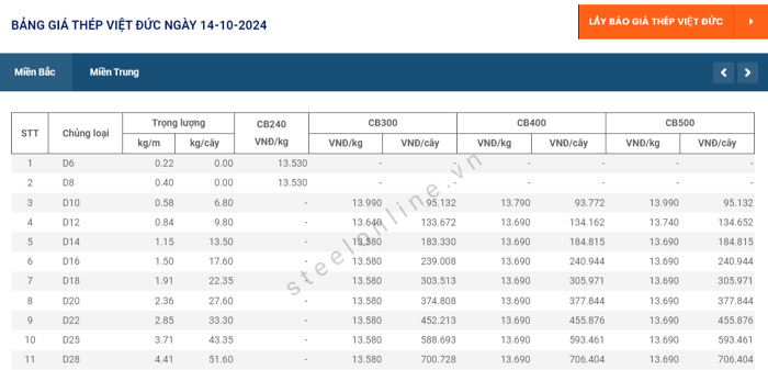 Chi tiết giá thép tại ba miền cụ thể: