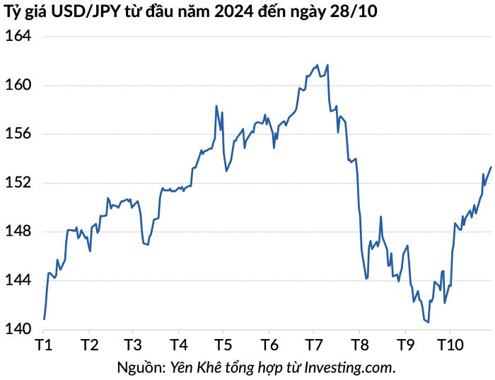 Đà tụt dốc của đồng yen (JPY) trong tháng này khiến các chiến lược gia cho rằng trong vài tuần tới, đồng nội tệ Nhật Bản sẽ giảm xuống mức thấp nhất là 155 hoặc 160 JPY đổi 1 USD khi cuộc bầu cử ở Nhật Bản và Mỹ gieo rắc bất ổn lên thị trường.