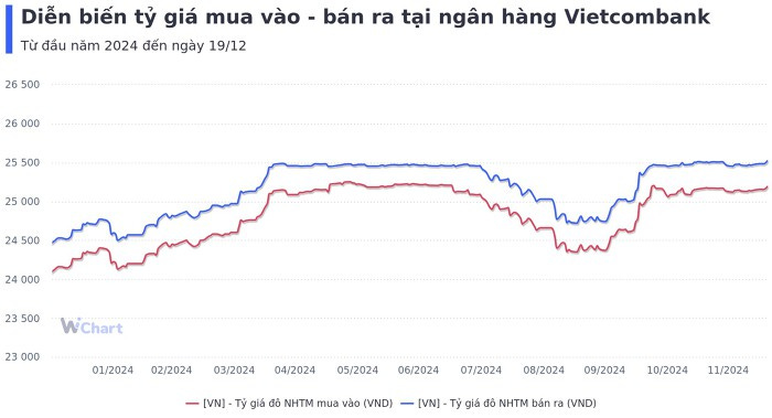 Trong năm 2024, tỷ giá đã hai lần vọt tăng mạnh khiến NHNN phải can thiệp bằng biện pháp bán ngoại tệ giao ngay. Gần kết thúc năm 2024, đà tăng của tỷ giá vẫn được duy trì dưới phạm vi 5% của NHNN.