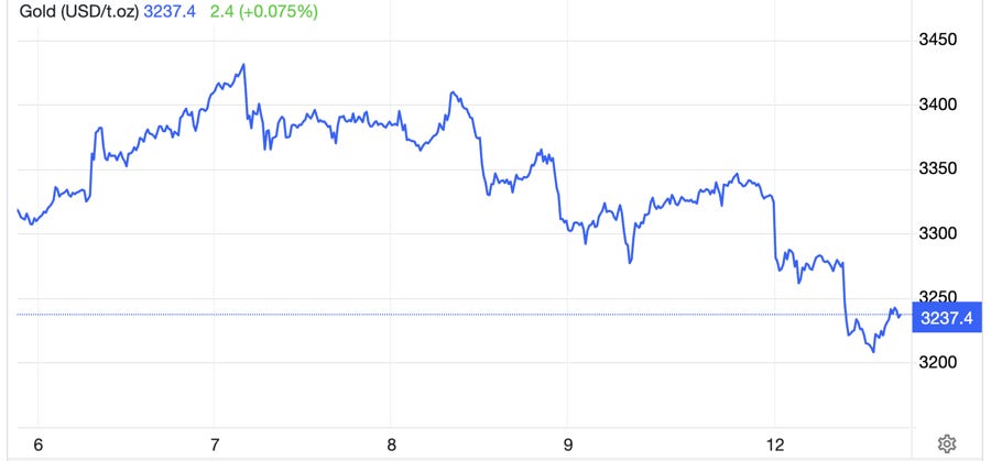Vàng - một “vịnh tránh bão” truyền thống cũng đang bị bán tháo. Lúc gần 9h tối theo giờ Việt Nam, giá vàng giao ngay trên thị trường quốc tế giảm gần 84 USD/oz, tương đương giảm hơn 2,5%, còn hơn 3.240 USD/oz. Trước đó, có thời điểm giá vàng giảm gần 120 USD/oz, về sát mốc 3.200 USD/oz.