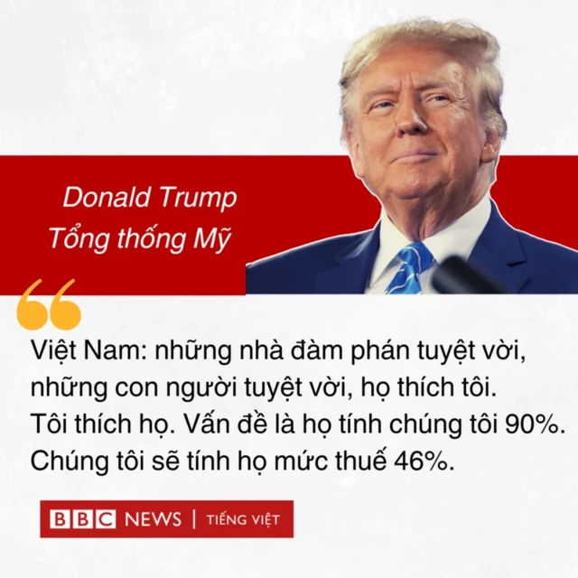 Tổng thống Mỹ Donald Trump công bố rằng Việt Nam đánh thuế Mỹ 90% nên Mỹ đánh lại mức thuế đối ứng 46% - đã "giảm giá" một nửa.