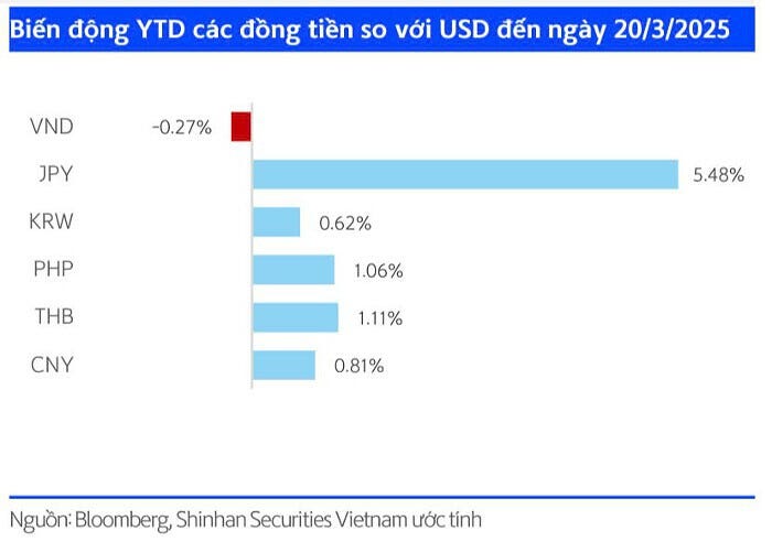 Tuy nhiên, nhóm phân tích cũng nhận định sự sụt giảm của chỉ số sức mạnh USD (DXY) trong tuần đầu tháng 3 (giảm 3,6%) có thể giúp ổn định tỷ giá. Bên cạnh đó, Vietcap kỳ vọng dòng vốn FDI mạnh mẽ và sự thu hẹp của thâm hụt thương mại dịch vụ sẽ góp phần hỗ trợ tỷ giá USD/VND.