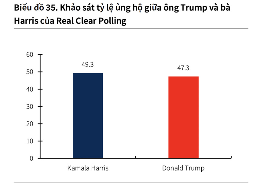 Theo KBSV, trong kịch bản bà Kamala Harris đắc cử Tổng thống được đánh giá là kịch bản tích cực đối với thị trường chứng khoán, khi các lập trường chính sách sẽ không có nhiều sự thay đổi với người tiền nhiệm, đi kèm với đó là sự ổn định về mặt chính trị và tranh chấp thương mại giữa các quốc gia sẽ ít có khả năng bùng phát...