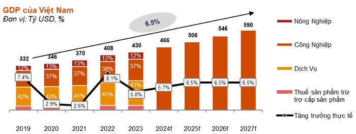 GDP của Việt Nam đã tăng dần trong những năm gần đây. Nền kinh tế duy trì tốc độ tăng trưởng mạnh mẽ trong thập kỷ qua trong khu vực. Phân tích GDP theo ngành, sản xuất chế tạo là một trong những lĩnh vực đóng góp chính cho GDP của Việt Nam, chiếm khoảng 25% GDP và là ngành lớn nhất trong cơ cấu kinh tế Việt Nam.