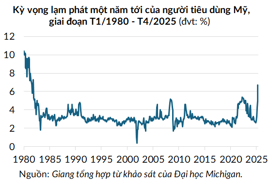 Tâm lý người tiêu dùng đang trở nên tiêu cực. Khảo sát mới nhất của Đại học Michigan cho thấy người Mỹ dự kiến trong một năm tới, lạm phát sẽ tăng lên 6,7%. Lần gần nhất kỳ vọng lạm phát một năm của người tiêu dùng Mỹ chạm mức này là vào đầu thập niên 1980.
