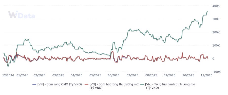 Có 18.912,65 tỷ đồng đáo hạn phiên 3/12. Ngân hàng Nhà nước không chào thầu tín phiếu. Như vậy, Ngân hàng Nhà nước nước hút ròng 1.098,96 tỷ đồng từ thị trường trong phiên hôm qua. Chốt phiên 3/12, khối lượng lưu hành trên kênh cầm cố đạt 358.195,91 tỷ đồng.