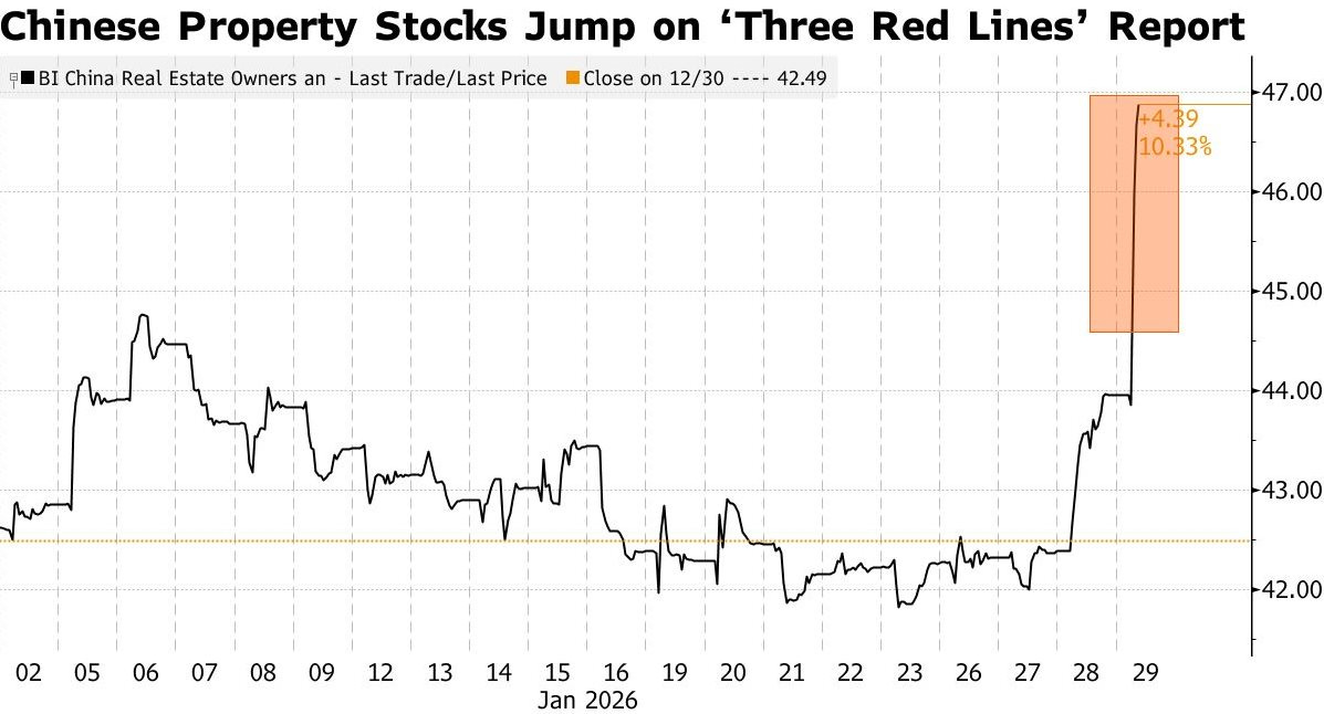 Cổ phiếu các công ty bất động sản Trung Quốc niêm yết tại Hồng Kông tăng mạnh sau thông tin trên. Sunac tăng hơn 22%, China Aoyuan tăng trên 16%, Country Garden tăng 14,5%, Shimao Group tăng gần 16%. Chỉ số Bloomberg Intelligence về cổ phiếu các nhà phát triển bất động sản Trung Quốc đã tăng tới 7,3% vào 29/1, mức tăng mạnh nhất kể từ tháng 7/2025.