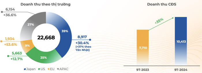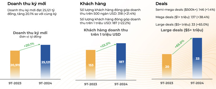 Doanh thu ký mới cán mốc 1 tỷ USD trong 9 tháng, đạt 25.121 tỷ đồng (tăng 20% so với cùng kỳ), tập trung chủ yếu tại thị trường Nhật Bản và châu Á - Thái Bình Dương (APAC).