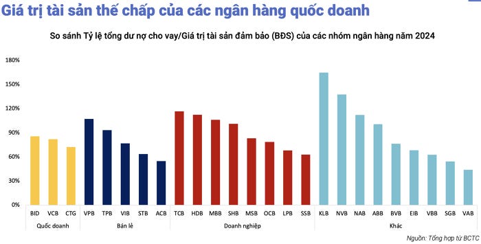 "Theo cảm nhận phổ biến, các ngân hàng quốc doanh ít bị ảnh hưởng bởi nợ xấu hơn do chất lượng khách hàng tốt và tài sản đảm bảo có chất lượng cao. Trên thực tế, dữ liệu năm 2024 cho thấy giá trị tài sản đảm bảo tại các ngân hàng quốc doanh thường lớn hơn nhiều so với dư nợ." ông Ân chia sẻ.