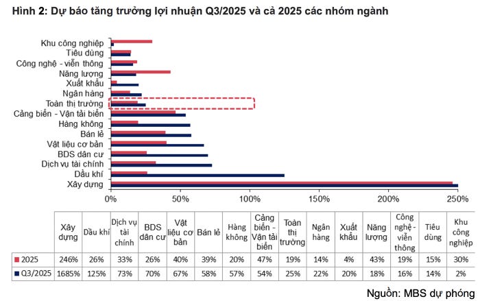 Chứng khoán MBS dự báo lợi nhuận toàn thị trường có thể ghi nhận mức tăng trưởng 25% so với cùng kỳ trong quý III nhờ môi trường lãi suất thấp, giải ngân đầu tư công mạnh mẽ và nhiều chính sách được ban hành hỗ trợ cho doanh nghiệp.
