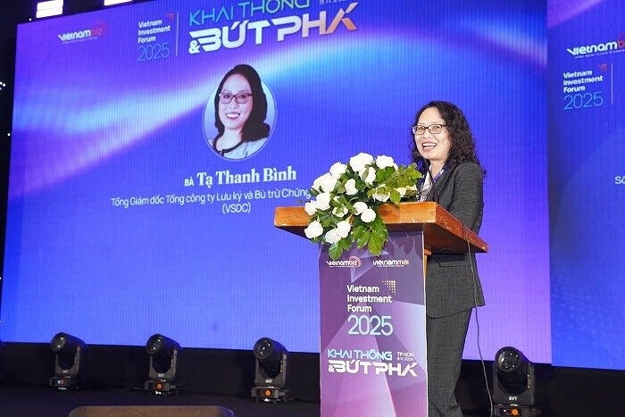 Tại Diễn đàn Đầu tư Việt Nam 2025 diễn ra mới đây, bà Tạ Thanh Bình, Tổng Giám đốc Tổng Công ty Lưu ký và Bù trừ chứng khoán Việt Nam (VSDC), cho biết thị trường Việt Nam đã đạt các chỉ tiêu định lượng từ lâu. Hiện cơ quan quản lý đang dần tháo gỡ các chỉ tiêu về mặt định tính.