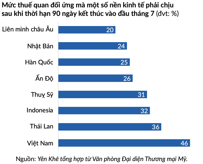 Hơn một tuần sau, ông thông báo tạm hoãn các mức thuế cao hơn trong 90 ngày để tạo điều kiện cho các nước đàm phán. Trong thời gian này, hàng hoá của gần 60 đối tác thương mại lớn sẽ chịu mức thuế 10%.