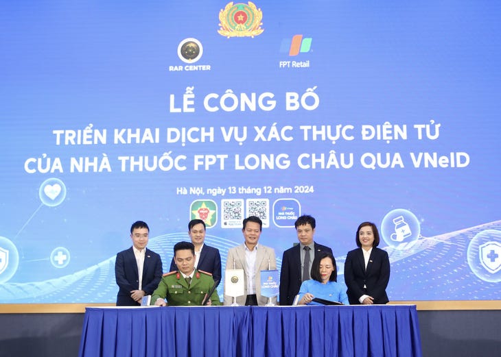 Chiều 13-12, FPT Long Châu và Trung tâm Nghiên cứu, ứng dụng dữ liệu dân cư và căn cước công dân (Trung tâm RAR) thuộc Cục Cảnh sát quản lý hành chính về trật tự xã hội (C06), Bộ Công an tổ chức lễ công bố triển khai dịch vụ xác thực điện tử của hệ thống nhà thuốc Long Châu qua VNeID.