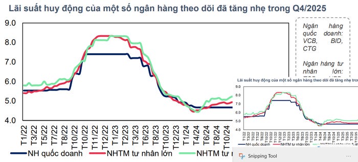 Từ tháng 10/2025, một số ngân hàng thương mại đã điều chỉnh tăng khoảng 0,5% lãi suất các gói vay mới, đồng thời rút ngắn thời gian hưởng lãi suất cố định cho vay mua nhà. Theo dự báo của công ty chứng khoán, mặt bằng lãi suất trong năm 2026 sẽ tăng nhẹ so với năm 2025 nhưng không gây tác động tiêu cực lớn đến thị trường.