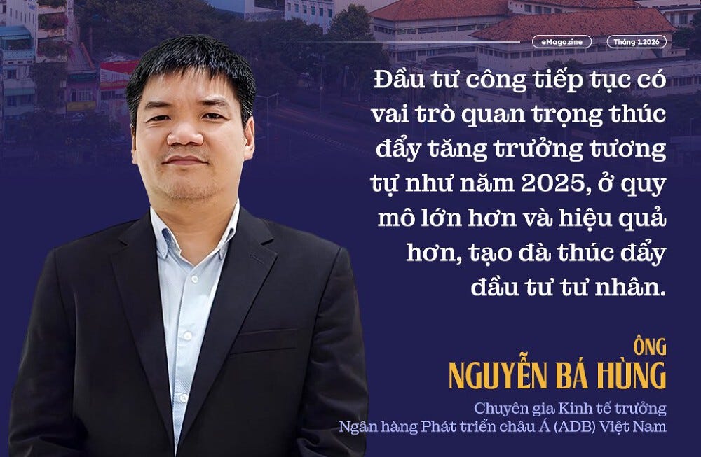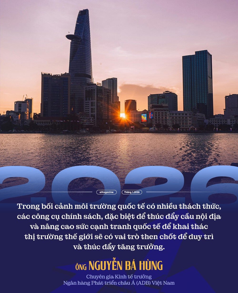 Chuyên gia Nguyễn Bá Hùng: Nhìn lại năm 2025, nền kinh tế Việt Nam ghi nhận sự tích cực rõ nét trong nhiều lĩnh vực: GDP cả năm 2025 tăng 8,02% đưa quy mô nền kinh tế lên 514 tỷ USD, bất chấp những tác động tiêu cực từ thuế đối ứng, xuất khẩu vẫn tăng trưởng 17%, thu hút đầu tư trực tiếp nước ngoài (FDI) tiếp tục lập kỷ lục.