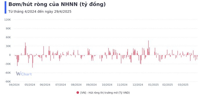 Theo đó, NHNN vẫn ưu tiên hỗ trợ thanh khoản cho hệ thống liên ngân hàng thông qua phát hành hợp đồng mua lại đảo ngược (RRP) với mức nền lãi suất 4% trên dải kỳ hạn từ 7 ngày đến 35 ngày (tổng giá trị phát hành đạt 220.000 tỷ đồng trong tháng 4).