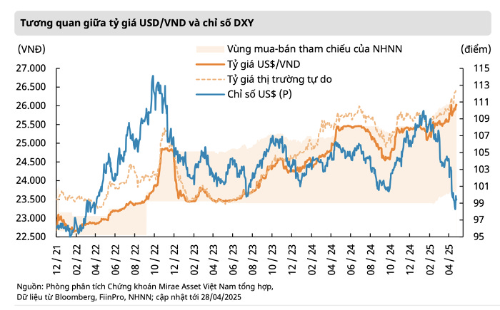 Trong báo cáo vĩ mô mới công bố, CTCP Chứng khoán Mirae Asset nhận định tỷ giá USD/VND tiếp tục tăng trong tháng 4 trong bối cảnh biến động vĩ mô vẫn chưa có dấu hiệu ổn định. Theo nhóm phân tích Mirae Asset, mức biến động hiện tại của tỷ giá vẫn nằm trong phạm vi cho phép và mục tiêu hàng đầu của NHNN hiện tại.