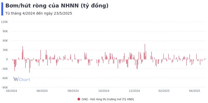 Trên kênh tín phiếu không ghi nhận giao dịch khi nhà điều hành đã ngừng phát hành tín phiếu từ ngày 5/3. Tổng cộng trong tuần qua (từ 19/5-24/5), NHNN đã hút ròng 1.325 tỷ đồng khi lượng lớn giấy tờ có giá đáo hạn.